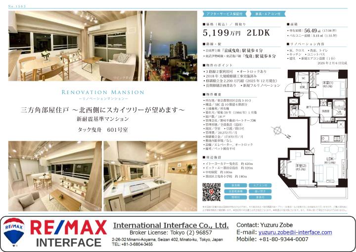 Elfino AsakusaTop floor, 3-sided corner room, wide-span balcony