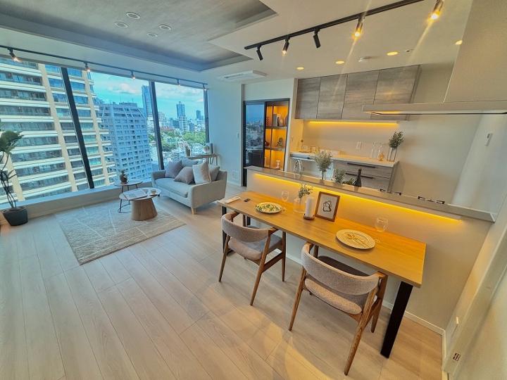 City Tower Azabu-Juban is a 38-story, 501-unit tower condominium complex, formerly sold by Sumitomo Realty & Development and constructed by Shimizu Corporation, that was completed in May 2009. Its sharp and elegant exterior, clad in a blue-green glass curtain wall that sparkles in the sunlight, shines with elegance befitting a new landmark in the heart of the city. The building is also designed with a seismic isolation structure to reduce shaking during earthquakes. City Tower Azabu-Juban also offers a wide range of shared spaces, including a two-story atrium sky lounge on the 24th and 25th floors, guest rooms, a concierge service that pursues comfort, and hotel-like carpeted interior corridors. City Tower Azabu-Juban is a 4-minute walk from Azabu-Juban Station, which is served by two lines, the Toei Oedo Line and the Tokyo Metro Namboku Line, and Akabanebashi Station on the Toei Oedo Line. The area is also within walking distance of the new Roppongi Hills and Tokyo Midtown, as well as the bustling Azabu-Juban shopping district, which has remained as lively as ever, making it a great location for shopping and dining out.